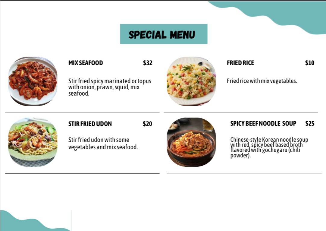 Guests can expect standout items like smoky Korean BBQ and dishes featuring crystal noodles or kimchi soup that bring warmth and depth to the table. The menu encourages sharing and enjoying a variety of tastes—whether you’re in the mood for a rich, savory meal or something lighter to complement the welcoming atmosphere.